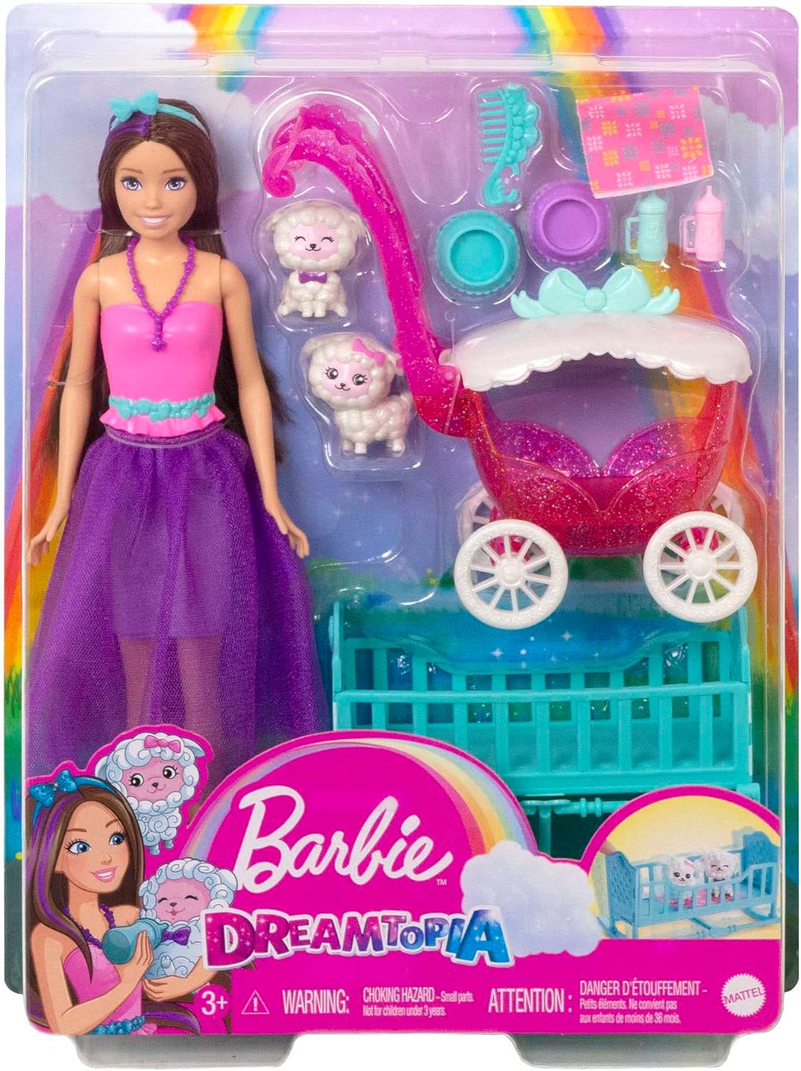 Pomagaj lutki Skipper skrbeti za dve ljubki ovčki in se z njima podaj na dan, poln iger, obrokov, počitkov in še več s tem kompletom Barbie.