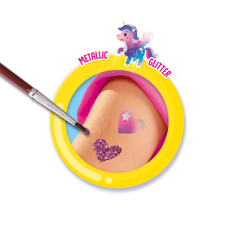 Objavte kúzlo jednorožcov s touto nádhernou sadou, ktorá obsahuje všetko, čo potrebujete na vytvorenie jedinečných kovových tetovaní!