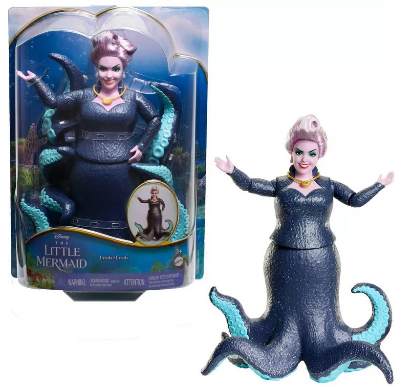 - Bábika Ursula je pohyblivá a zobrazená v autentickom vzhľade s chápadlami, odnímateľným náhrdelníkom a trblietavými detailmi!