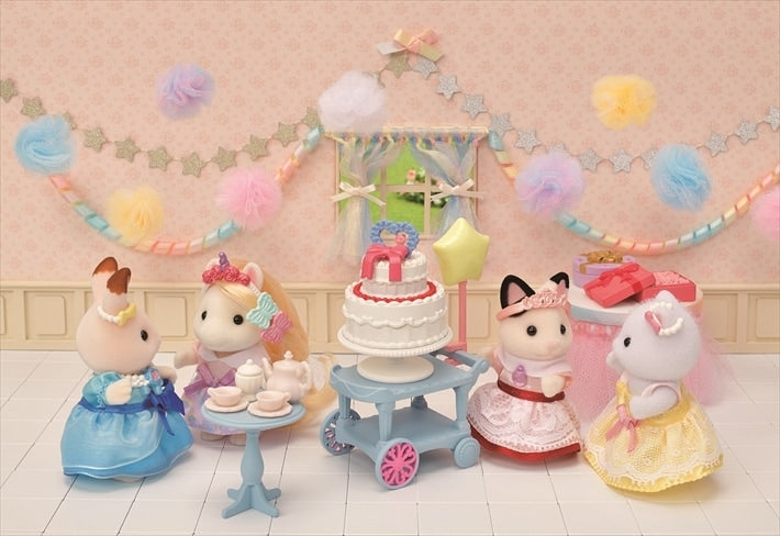 Cena za jednotku ZaZábavná sada "Čas zábavy" - dievča v kabáte Tuxedo Cat - obsahuje Lily v exkluzívnom zábavnom oblečení, okrem toho aj luxusnú dvojposchodovú tortu a darčeky. Obsahuje tiež doplnky na zdobenie torty. Hornú aj spodnú časť torty je možné servírovať na samostatných tanieroch. Tortu alebo čajovú sadu môžete umiestniť na vozík pre jednoduché presúvanie. Hviezdičkový balón sa tiež môže pripevniť na vozík. Alice stuhu môže nosiť zahrnutá figúrka, alebo ju môžete umiestniť do darčekovej krabičky.