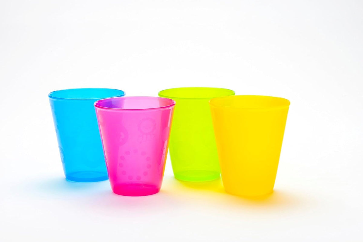 Šálky a tanieriky pre batoľatá pomáhajú pri učení používania klasickej šálky a zabraňujú neúmyselnému vylievaniu tekutín. Šálky sú na tanieriku (zásuvke). Tanierik je vyrobený z mäkkého, priľnavého materiálu, ktorý sa môže pripevniť na akýkoľvek rovný povrch, ako je stôl alebo detská stolička. Sada neobsahuje bisfenol A a je vhodná na umývanie v umývačke riadu. Táto sada obsahuje 4 šálky v neutrálnych farbách.
