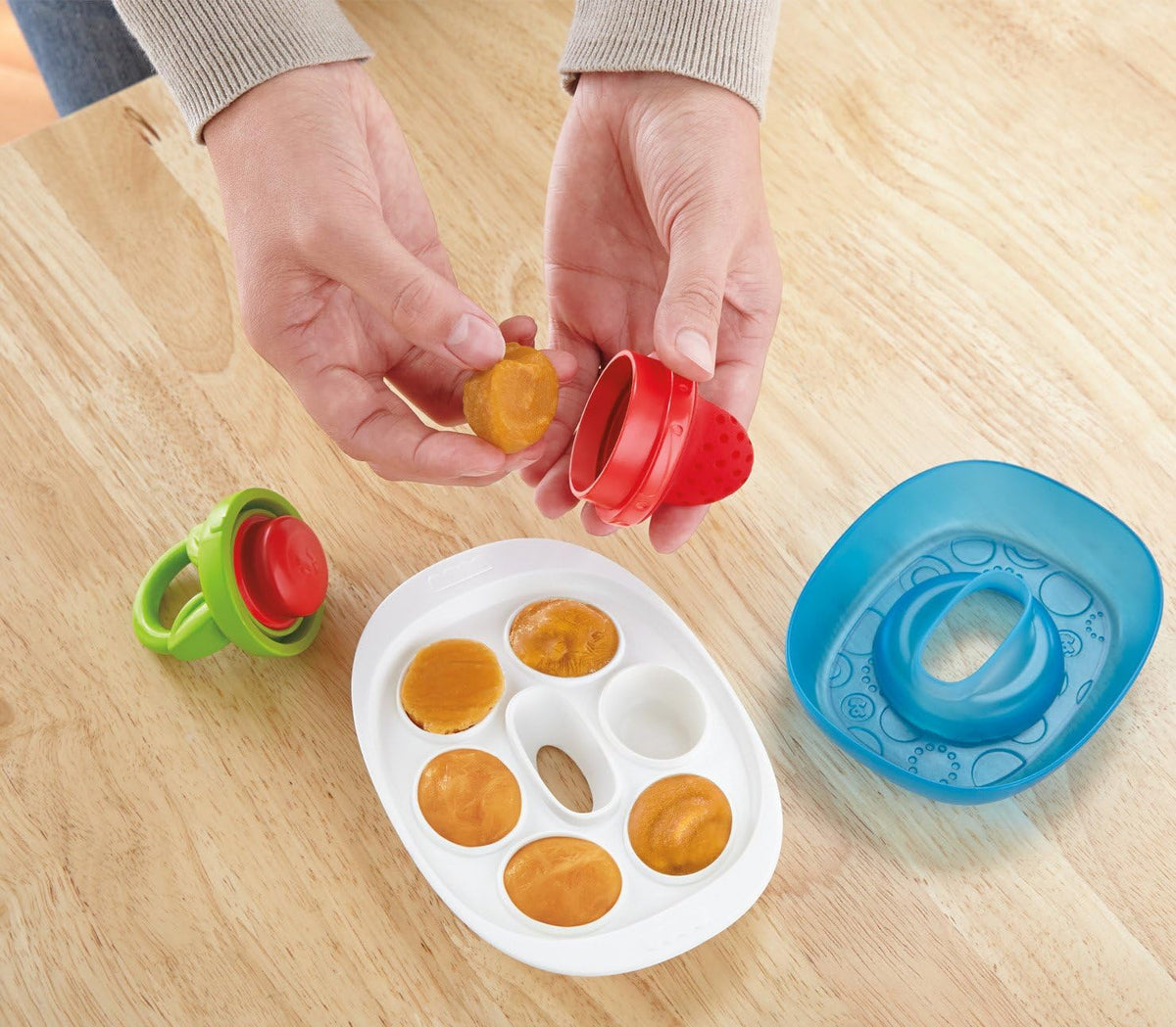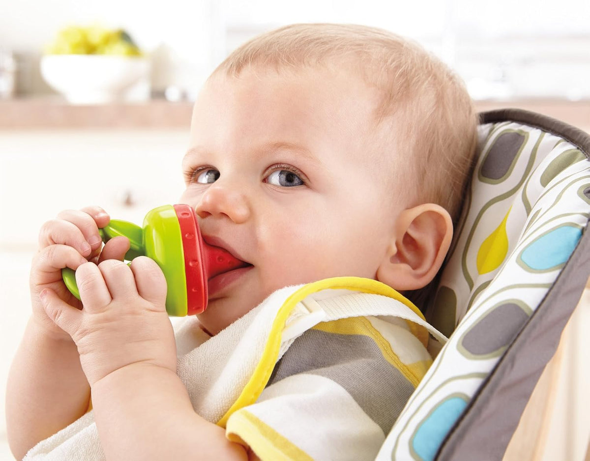 Nová línia produktov na kŕmenie značky Fisher Price s kvalitou, ktorej môžete dôverovať! V novej línii na kŕmenie značky Fisher Price sú k dispozícii produkty ako: misky s príborom, lyžičky a vidličky v dvoch modeloch, a protišmykové poháre pre deti od 6 mesiacov a pre staršie od 12 mesiacov. Línia sa vyznačuje najvyššou kvalitou použitých materiálov, ergonomickými riešeniami a dizajnom, ktorý umožňuje dieťaťu naučiť sa jesť samostatne. Fisher Price Zubný hryzátko Zamrznutá sladká tyčinka na zuby 6m+ Y9842 Jedinečný hryzátko sladkosť pomôže mamičke a batoľaťu v období prerezávania zúbkov. Batoľa si ho môže vychutnať aj ako chutnú desiatu počas dňa. Možnosť zmrazenia obľúbeného džúsu alebo jedla v priehradkách určených na tento účel. Zamrznutú vložku jednoducho vložte do sladkosti a ponúknite batoľaťu. Batoľa ho bude s radosťou cmúľať a zároveň pomôže zmierniť bolesť ďasien počas rastu zubov. Jednoduché na čistenie, estetické a odolné. Vyrobené z bezpečných materiálov. Výhody: Mäkký, silikónový povrch hryzátka zmierňuje bolesť ďasien, bezpečné pre batoľa, odolné a ľahko sa čistí, tácka s priehradkami umožňuje zmraziť 8 vložiek na sladkosť z džúsov, vody alebo obľúbeného jedla, na vrchu tácky je priestor na uloženie hryzátka, jednoduché na uskladnenie. Vek dieťaťa: od 6 mesiacov.