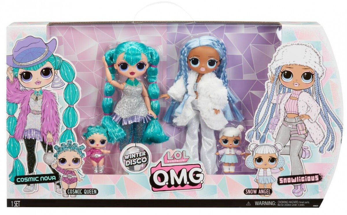 Komplet L.O.L. Surprise Winter Disco OMG Cosmic Nova & Snowlicious od MGA je ideálny pre mladých milovníkov bábik a tvorivej hry. Komplet obsahuje 2 veľké bábiky a 2 malé bábiky, ako aj rôzne doplnky, ako sú nápoje a ďalšie príslušenstvo. S jedinečným dizajnom bábik Cosmic Nova a Snowlicious môže každé dievča vytvoriť svoje úžasné príbehy a zažiť nezabudnuteľné zážitky vo svete zimného diskotéky.