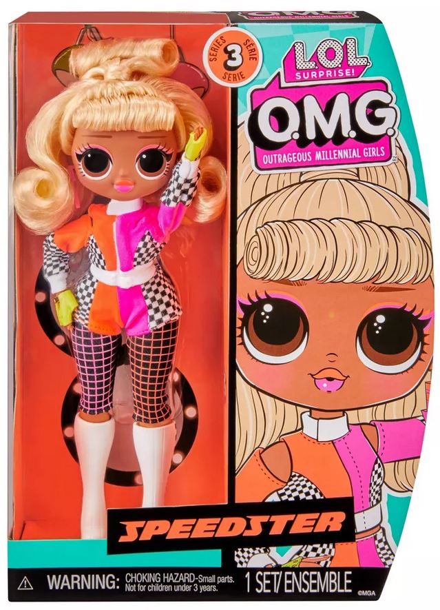 Módna bábika zo série "OMG" SPEEDSTER - štýlová a svetlá pretekárka! Miluje jazdu veľkou rýchlosťou, no vždy zostáva najviac módna! Jej vzhľad je vždy jasný, zaujímavý a vzrušujúci! Táto hračka nie je vhodná pre deti mladšie ako 3 roky: obsahuje jednu alebo viacero nasledujúcich malých častí: korálky, malú guľôčku alebo malé časti.