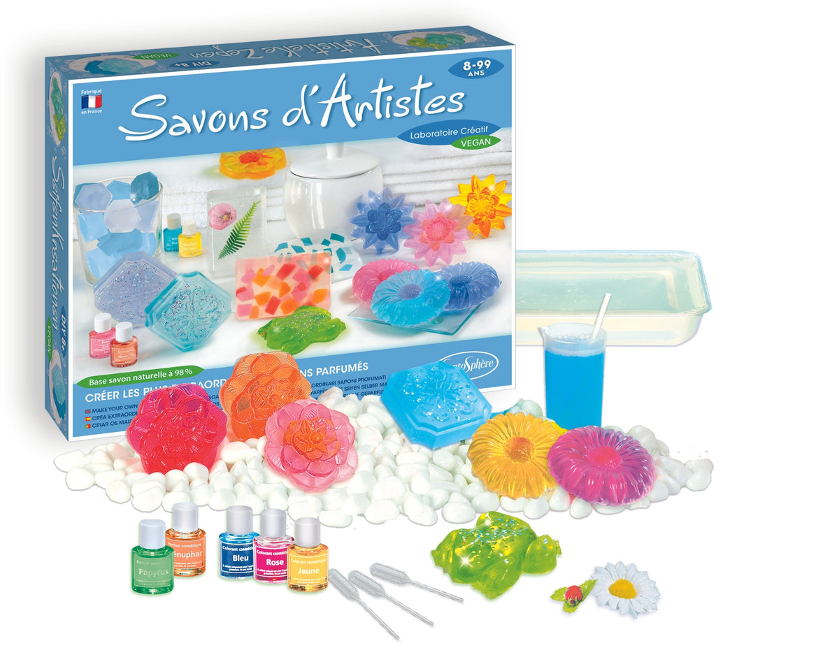 Nechajte svoju predstavivosť lietať, zatiaľ čo vytvárate výnimočné mydlá s viacfarebnými vložkami. Štýl môže byť moderný, romantický alebo kúzelný so žiarivými trblietkami, kamkoľvek vedie inšpirácia umelca. Perfektné na recykláciu starých kúskov mydla. K dispozícii sú náhradné sady. Vhodné pre vegánov: Neobsahuje živočíšne produkty.