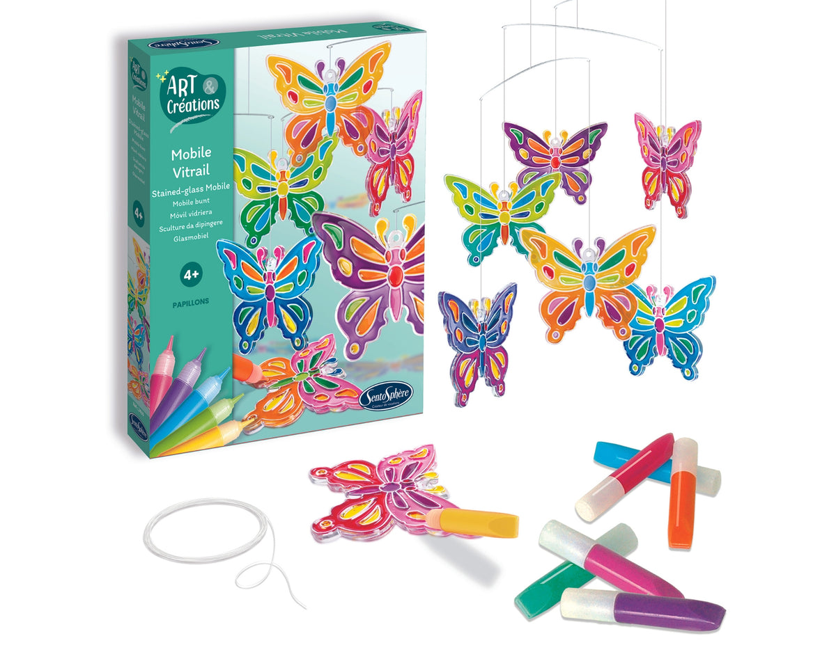 Vďaka tejto sade si malé deti vytvoria svoje vitráže tak, že do dekoratívnych rámov vstreknú svoje vybrané farby. O niekoľko hodín budú prvky suché a krištáľovo čisté, pripravené na zavesenie ako mobil, ktorý sa otáča a zobrazuje tisíce odleskov.