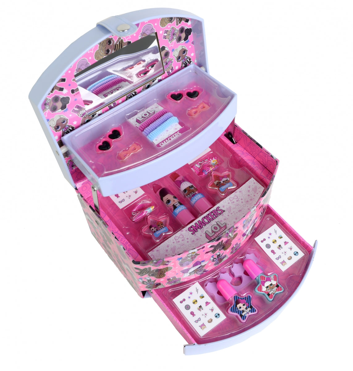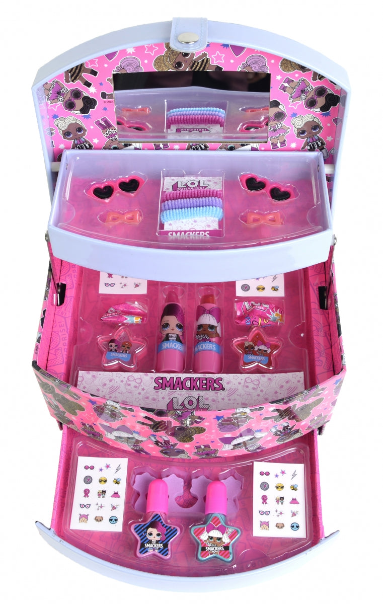 Objavte čarovný svet líčenia a šperkov s úžasným LOL Surprise Makeup Case for Jewelry 1482229E! Tento kozmetický set spája luxus líčenia s trblietavým leskom LOL Surprise a ponúka herný zážitok, ktorý podporuje kreativitu a predstavivosť. Praktická kozmetická škatuľka má tri vrstvy, ktoré umožňujú organizovaný priestor pre kozmetické doplnky. Otvorte škatuľku a objavte rôzne doplnky na vlasy, sponky, laky na nechty, nálepky na nechty, separátor na prsty, lesk na pery, rúž a dve malé prekvapenia. So zrkadlom na viečku sa škatuľka stane vaším osobným kozmetickým kútikom. Glamour kolekcia obsahuje 2 lesky na pery (2,4 g), 2 rúže (5 g), 2 laky na nechty (13,4 ml), 2 sponky do vlasov, 2 gumičky do vlasov, 2 prstene, 3 gumičky do vlasov, separátor na prsty a trendy kabelku s rúčkou a zapínaním, aby boli vaše doplnky bezpečné a usporiadané. Dovoľte deťom objaviť svet krásy s týmto zberateľským LOL Surprise setom – špeciálny darček, ktorý podporí ich predstavivosť a povzbudí ich vyjadriť svoj osobný štýl.