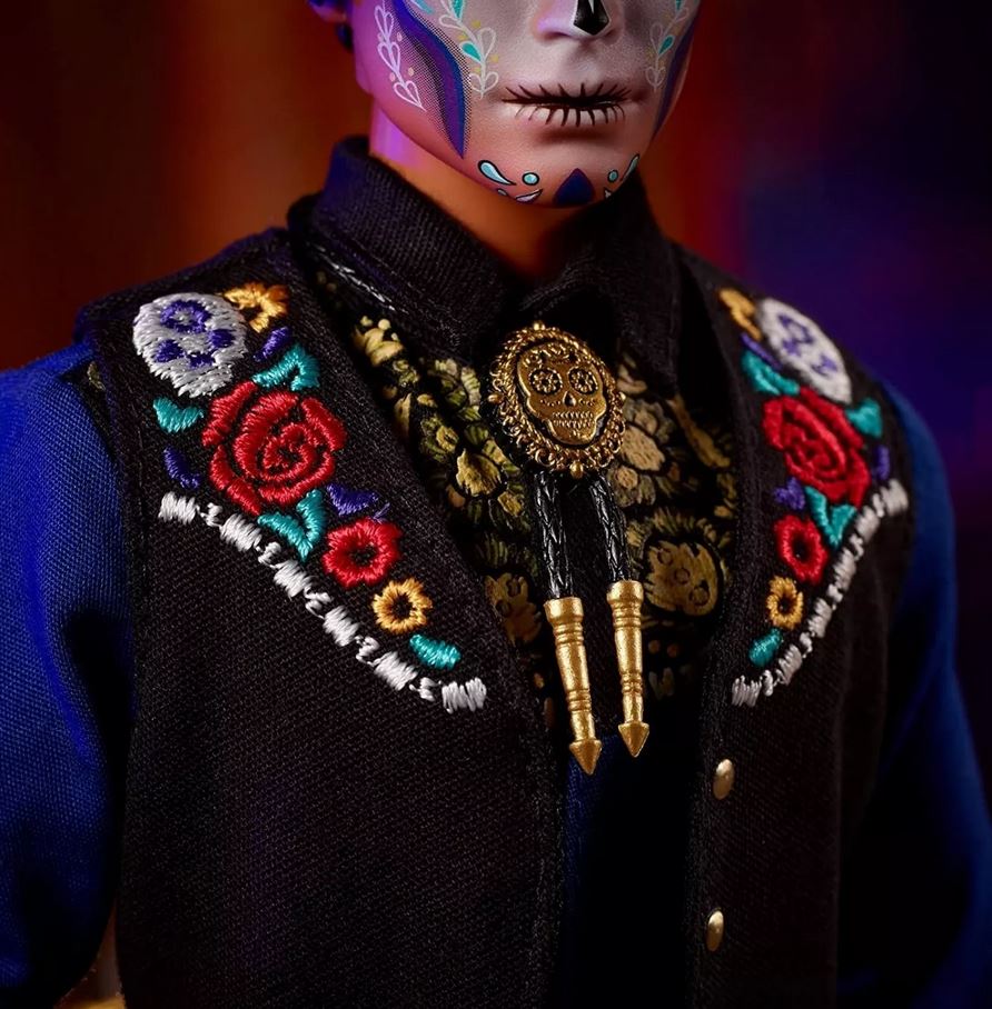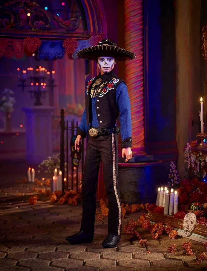 Bábika je ideálna pre zberateľov a skvelý ako darček. Vyniká výnimočnou pozornosťou k detailom. Ken bábika v štýle Charro nosí modrú košeľu a vestu, zdobenú trblietavými lebkami a kvetinovými doplnkami. Jeho oblečenie nádherne dopĺňa kravata s motívom lebky a sombrero so zlatým pásikom. Balenie je vhodné na vystavenie.
