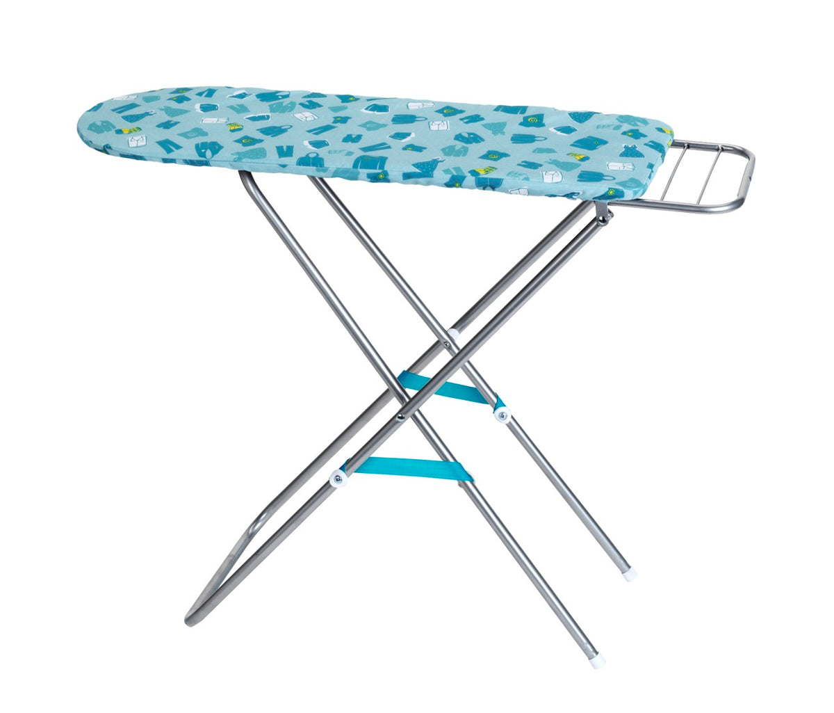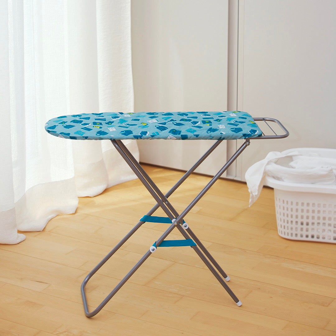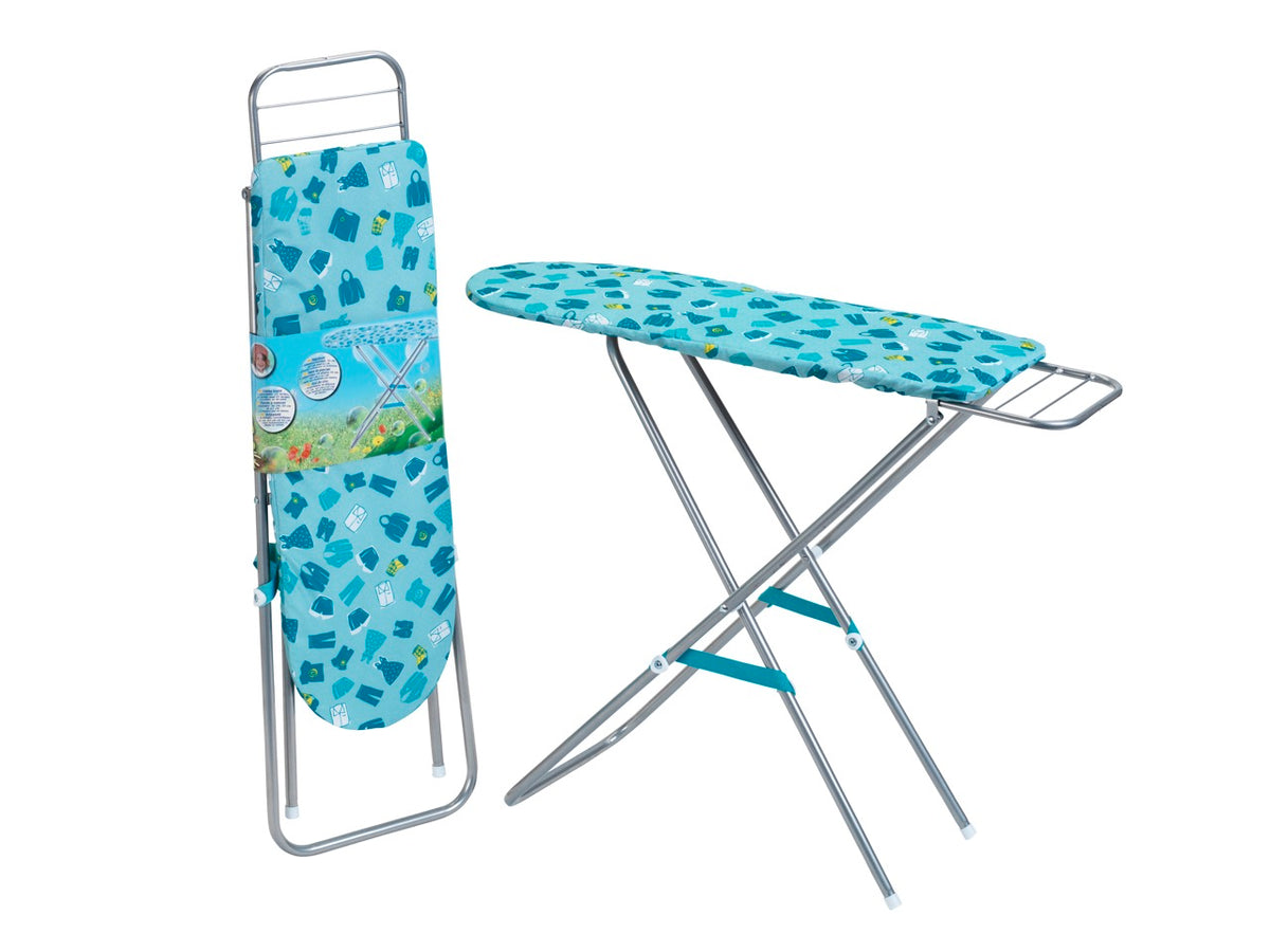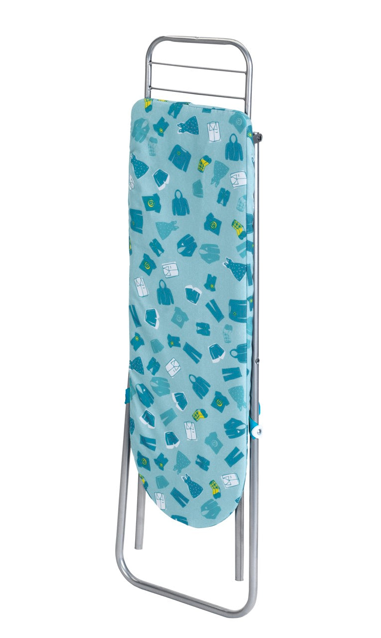 Vysokokvalitná a stabilná kovová žehliaca doska sa dá nastaviť na výšku 56, 60 a 62 centimetrov, aby vyhovovala veľkosti a rastu malých pomocníkov v domácnosti. Žehliaca doska má tyrkysový poťah, ktorý bol starostlivo navrhnutý pre všetky druhy odevov.